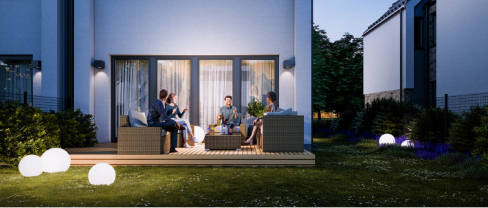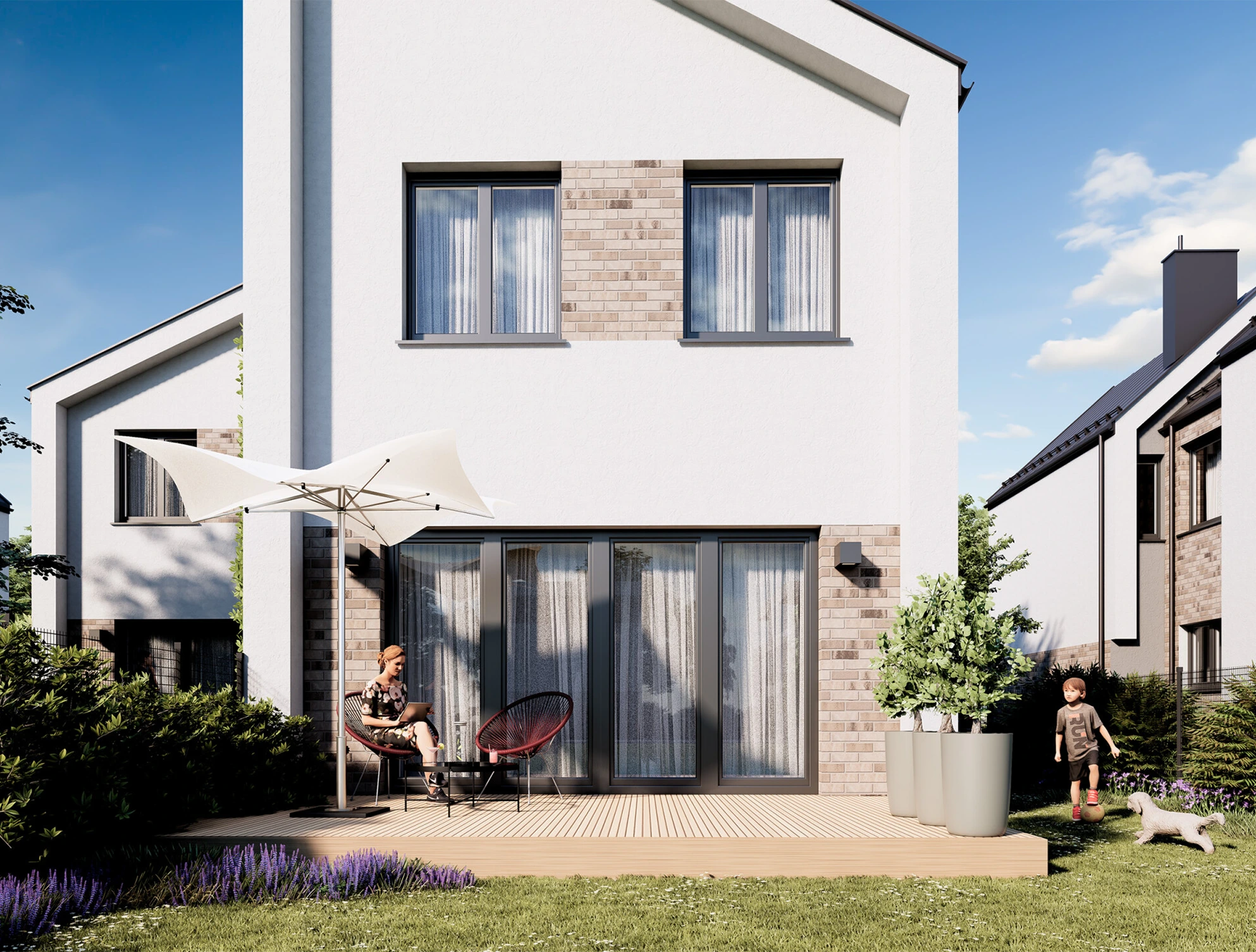 Własny dom z ogrodem w Warszawie to prawdziwa rzadkość – szczególnie, gdy ogród ma południową ekspozycję, dużą powierzchnię i pełną prywatność. W Błękitnym Wawrze każda nieruchomość posiada przestronną ogrodzoną działkę o powierzchni od 256 do 308 m², na której znajduje się wydzielony ogród o metrażu od 127 do aż 193 m². Południowa orientacja sprawia, że słońce towarzyszy mieszkańcom przez większą część dnia, nawet zimą. To przestrzeń, która daje swobodę – do odpoczynku i do życia w rytmie natury.