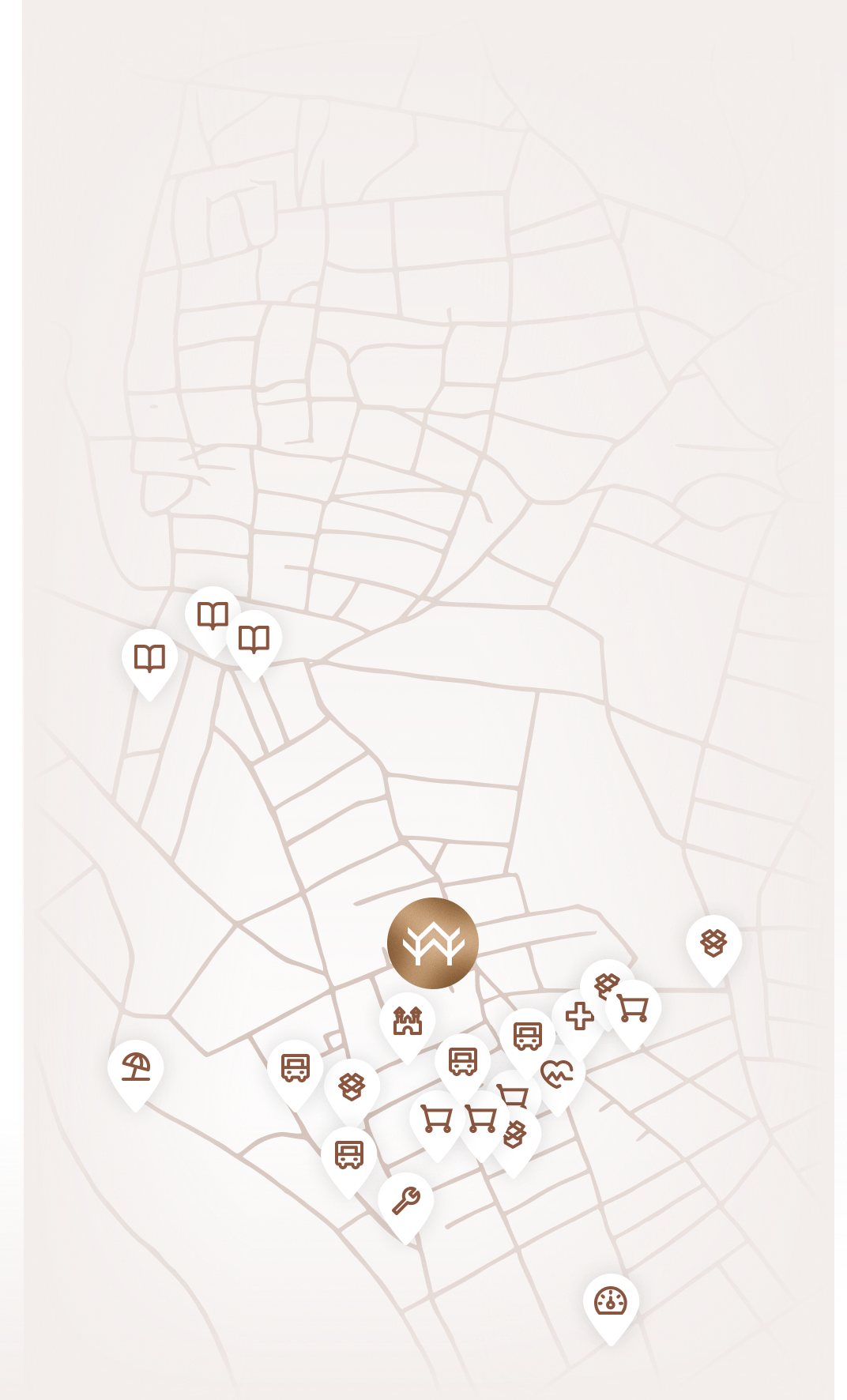 Własny dom z ogrodem, sąsiedztwo zieleni, intymność i spokój — a jednocześnie szybki kontakt z Warszawą. Takie lokalizacje stają się dziś prawdziwą rzadkością. W Błękitnym Wawrze domy zaplanowano tak, by główna sypialnia wychodziła w stronę pasa drzew. To więcej prywatności, zieleni i naturalnego światła na co dzień. Dojazd do Śródmieścia zajmuje zaledwie 25-35 minut — także komunikacją miejską. Z najbliższych dwóch przystanków odjeżdżają dwa autobusy bezpośrednio do stacji metra: jeden do Metro Stadion Narodowy, drugi do Metro Imielin. Z kolei bliskość Południowej Obwodnicy Warszawy (oddalonej o około 1300 m) pozwala szybko i wygodnie dotrzeć do dzielnic takich jak Mokotów, Ursynów, Wilanów czy na lotnisko.