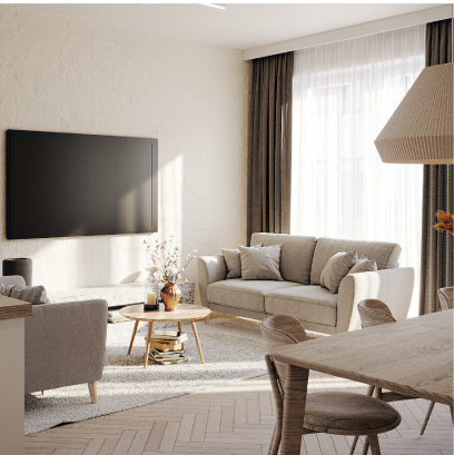 podwyższonej izolacji akustycznej oraz starannie dobrane materiały to rozwiązania znane z budów realizowanych dla prywatnych inwestorów. To nie kompromis — to świadomy wybór jakości.