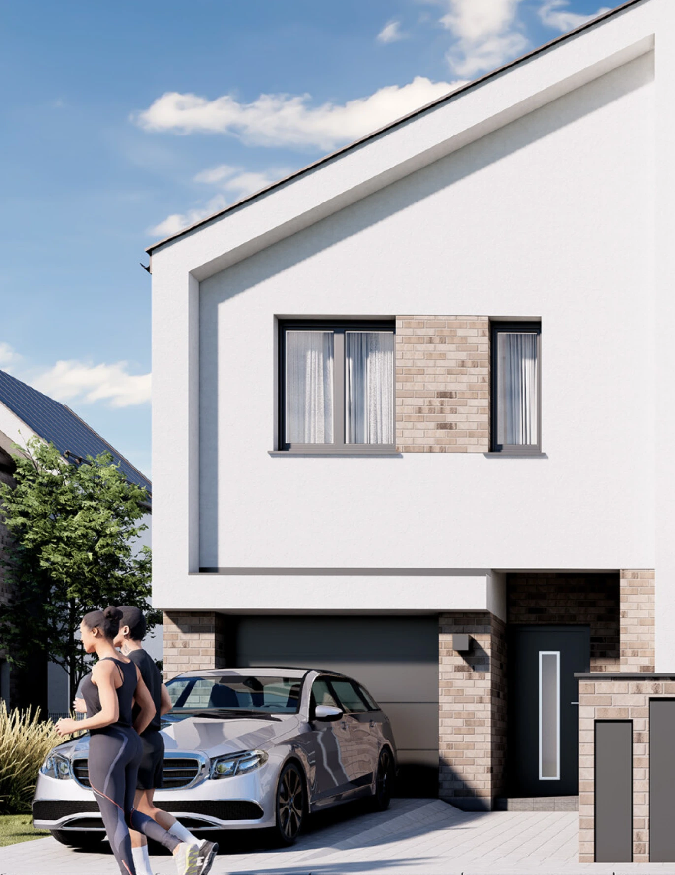 Garaż zintegrowany z bryłą domu to wygoda, którą docenia się każdego dnia – zwłaszcza wtedy, gdy za oknem pada deszcz, śnieg lub wieje silny wiatr. Sucha przestrzeń, ciepłe wnętrze i bezpośrednie wejście do domu bez konieczności wychodzenia na zewnątrz – to komfort, który sprawia, że nawet zimowe poranki zaczynają się spokojniej.